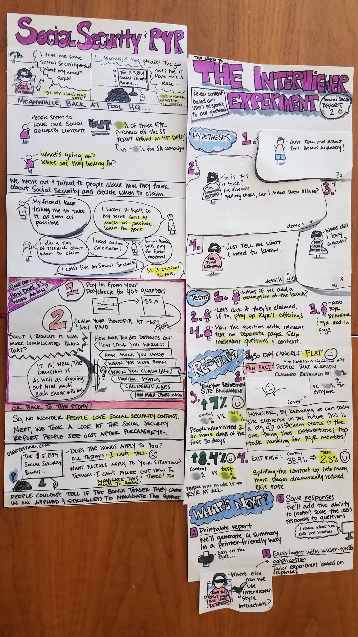 Created physical infographic to share findings from the Social Security research and experimentation with the organization.